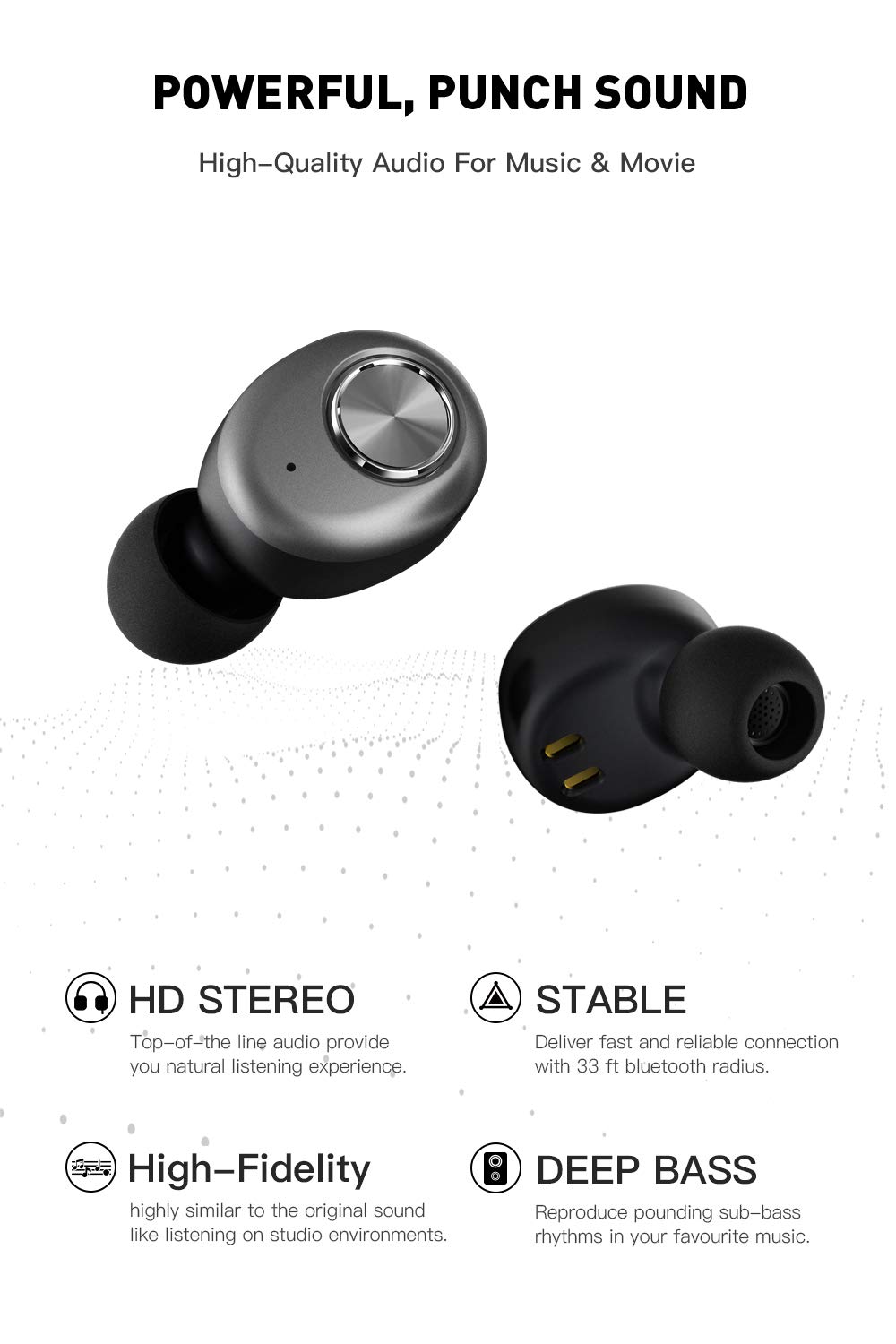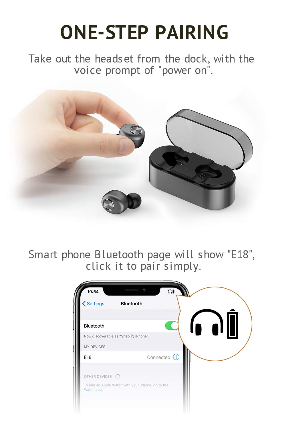 - ♬ Intelligent Connection: Unparalleled Bluetooth technology enables you to take the wireless earbuds out of its charging case and it would power on automatically, then proceed to click Bluetooth name from your phone’s Bluetooth page and you’re good to go. It seamless and automatic connection between earbuds and your devices.