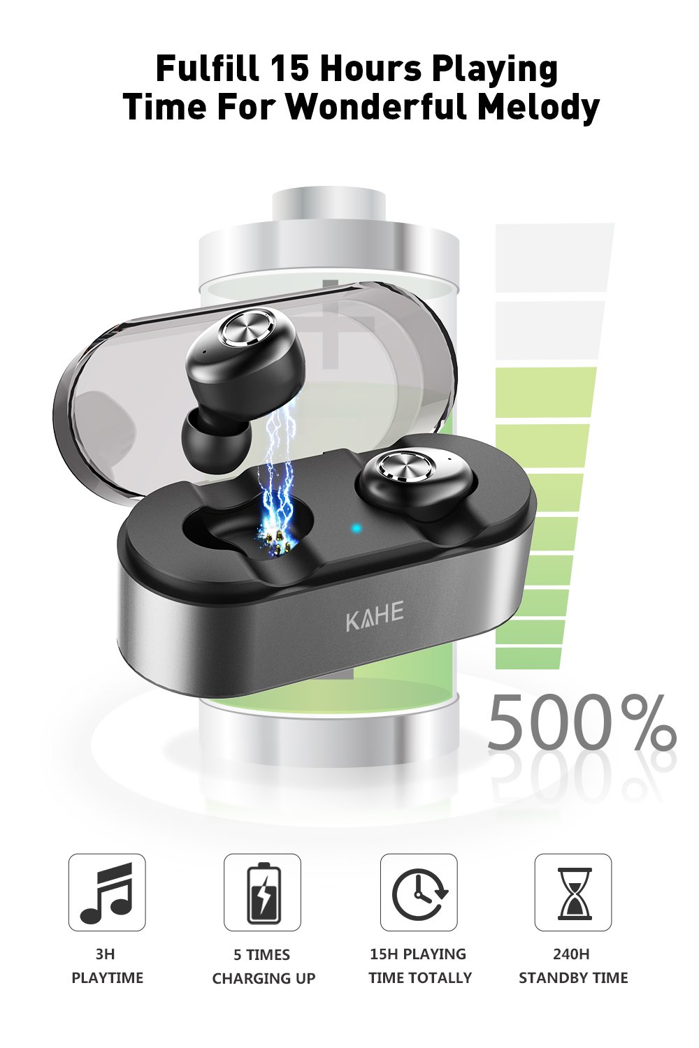 - ♬ Provides More For Your Needs: Your satisfaction is our working aim. KAHE Bluetooth earphones come with 3 sets of ear tips(include size S, M, L), charging cord, product guarantee card with 3-month refund/replacement, 12-month warranty.